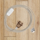 Fabric cable : 3.64m. [XZ3RC01] RC01 White Round Cotton Electrical Fabric Cloth Cord Cable - N° of cores: 3x0.75