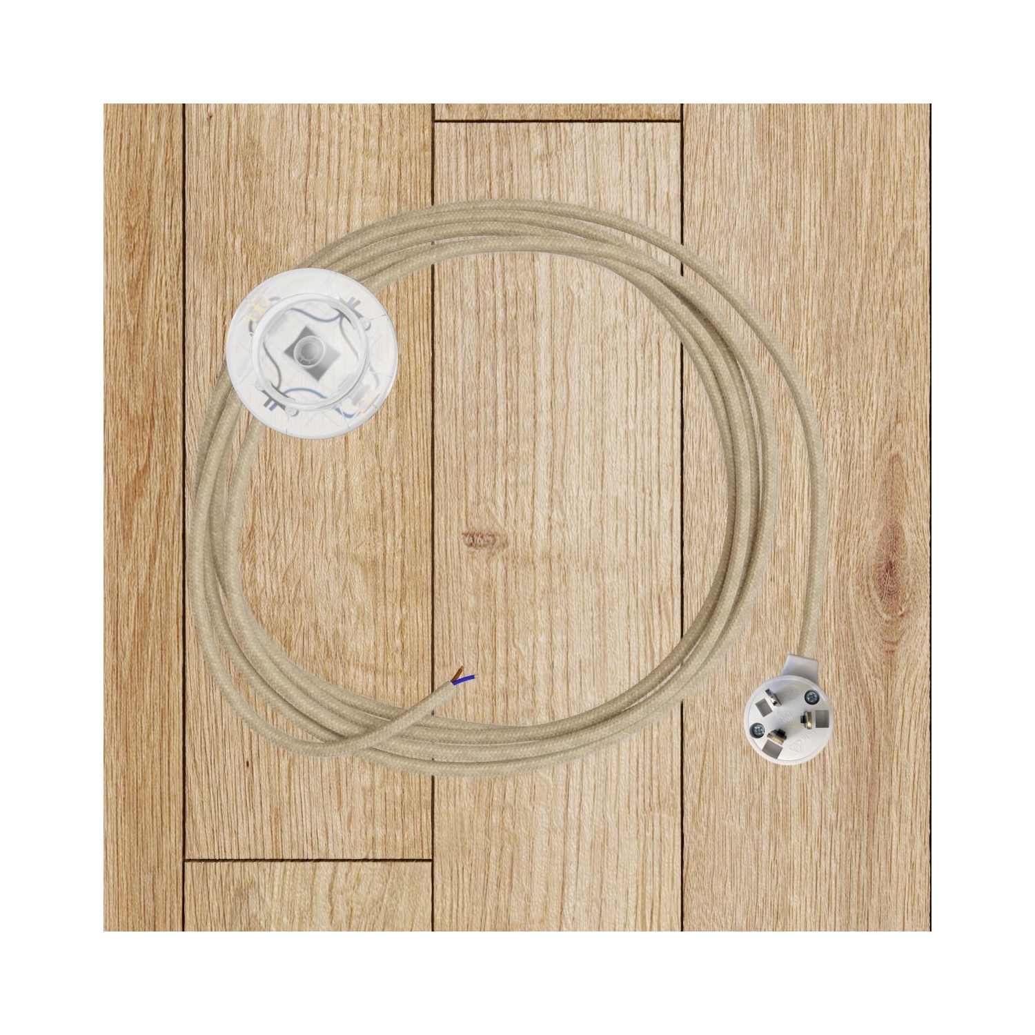 Fabric cable : 2.64m. [XZ2RN06] RN06 Jute Round Electrical Fabric Cloth Cord Cable - N° of cores: 2x0.75