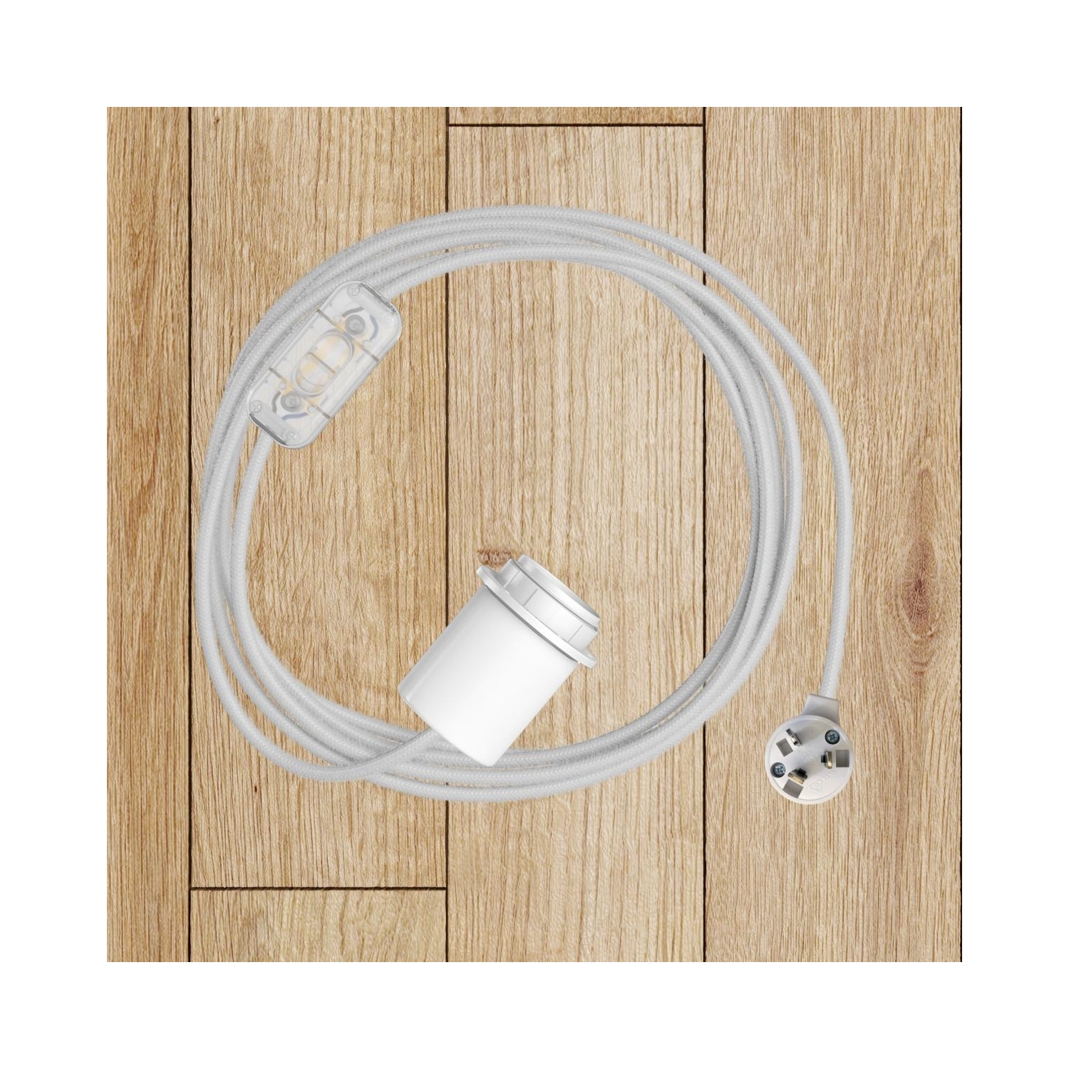 Fabric cable : 6.64m. [XZ3RC01] RC01 White Round Cotton Electrical Fabric Cloth Cord Cable - N° of cores: 3x0.75