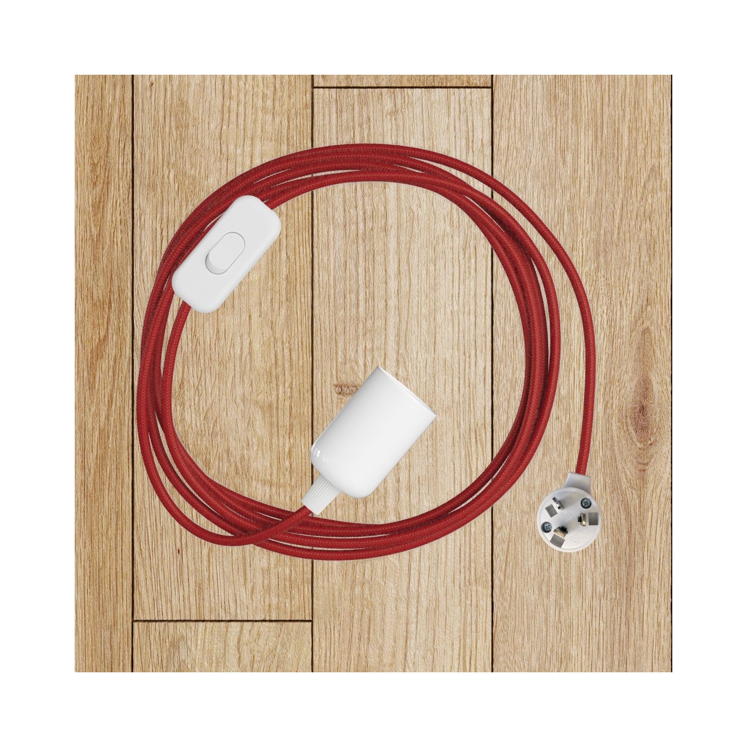 Fabric cable : 2.14m. [XZ2RC35] RC35 Fire Red Round Cotton Electrical Fabric Cloth Cord Cable - N° of cores: 2x0.75