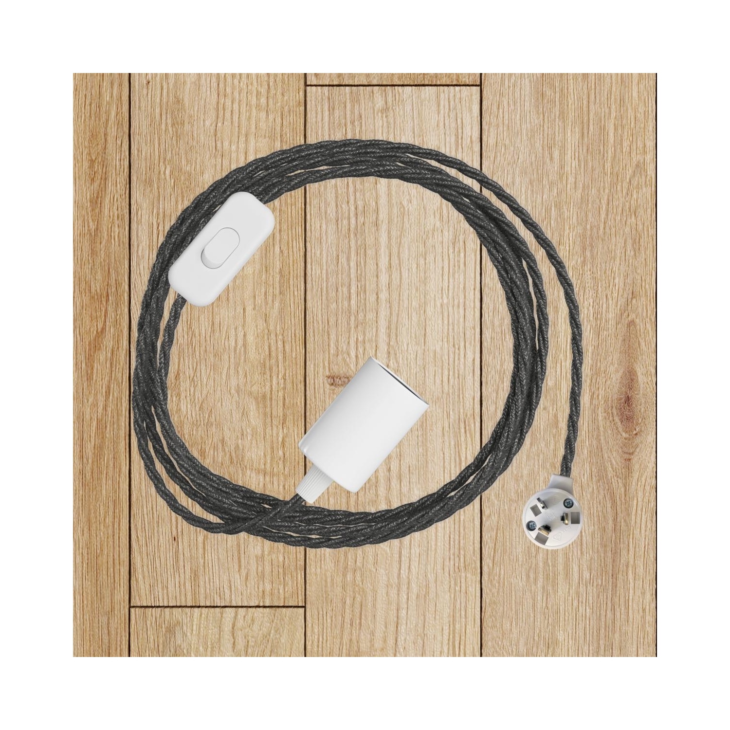 Fabric cable : 2.14m. [XZ3TN03] TN03 Natural Anthracite Twisted Linen Electrical Fabric Cloth Cord Cable - N° of cores: 3x0.75