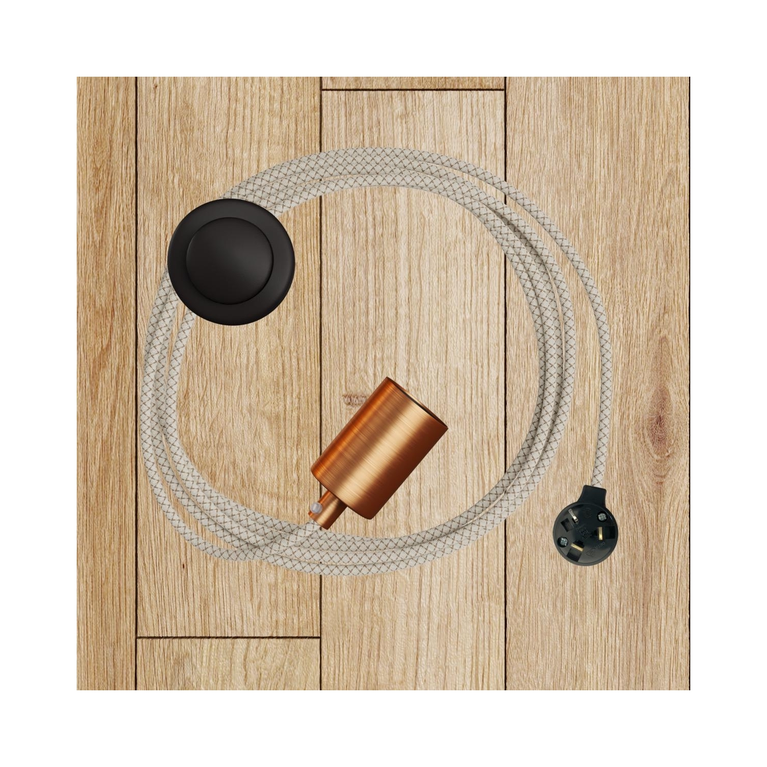 Lamp holder : 1X [KBM4011RASTERM] Cylindrical metal E27 lamp holder kit - Finish: Brushed copper, Cable clamp: Cylindrical