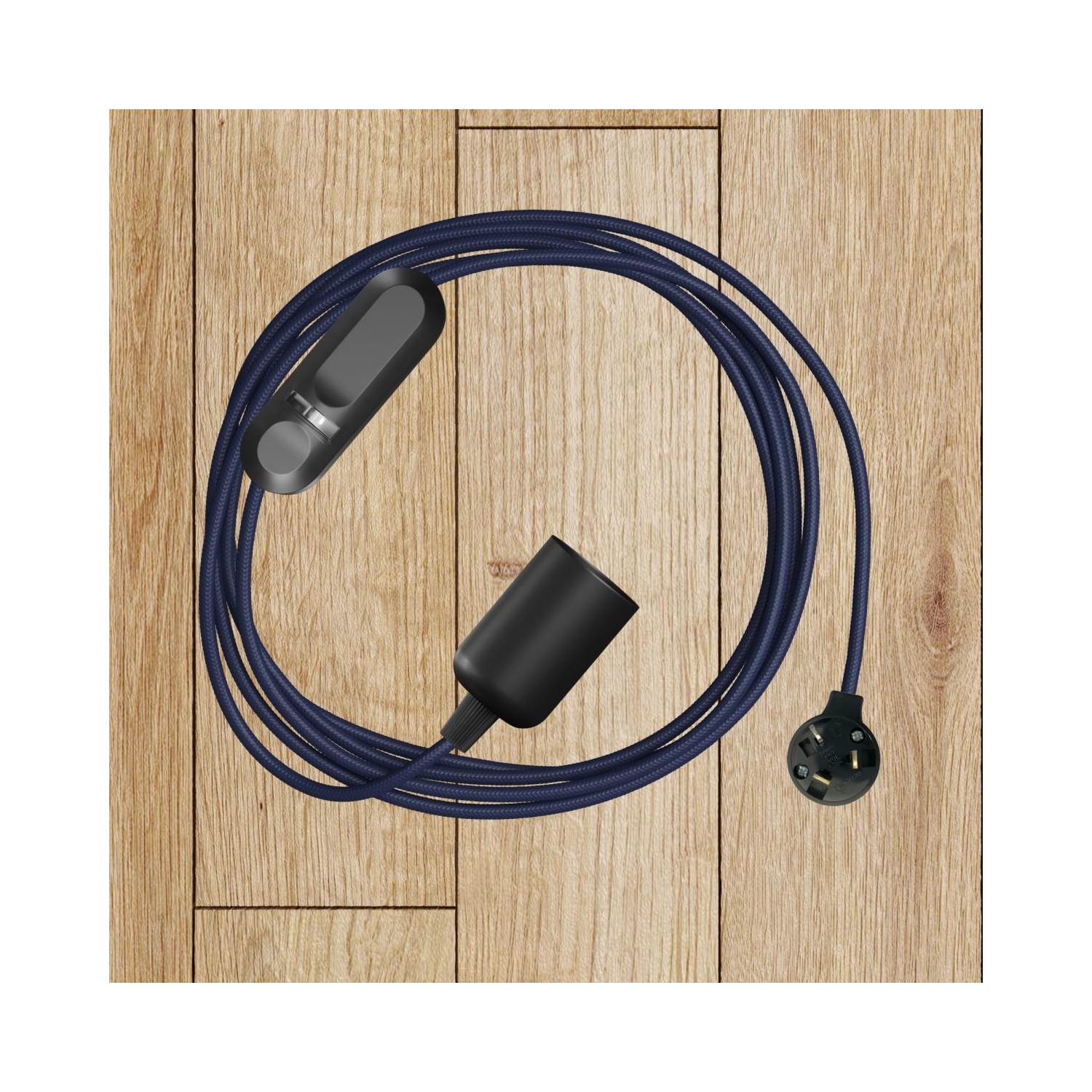 Fabric cable : 1.64m. [XZ2RM20] RM20 Dark Blue Round Rayon Electrical Fabric Cloth Cord Cable - N° of cores: 2x0.75