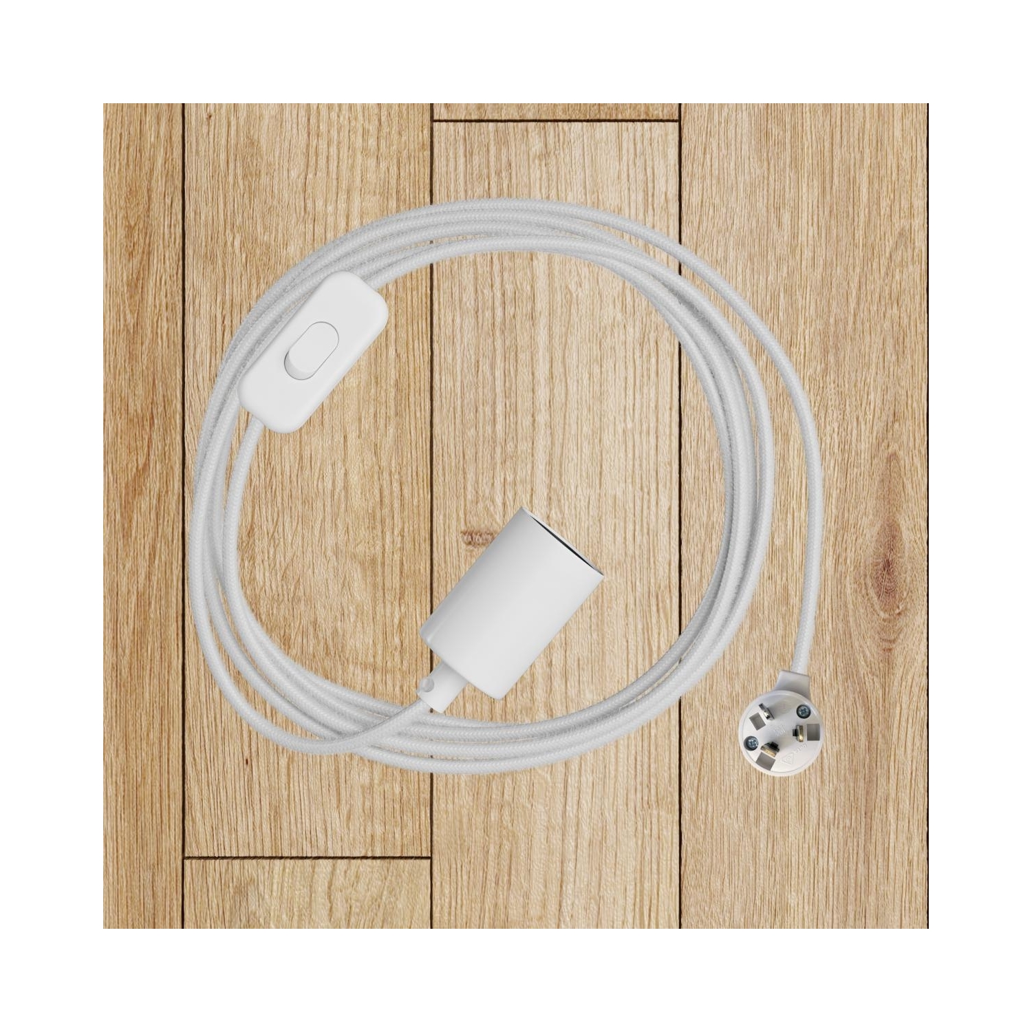 Fabric cable : 6.14m. [XZ3RC01] RC01 White Round Cotton Electrical Fabric Cloth Cord Cable - N° of cores: 3x0.75
