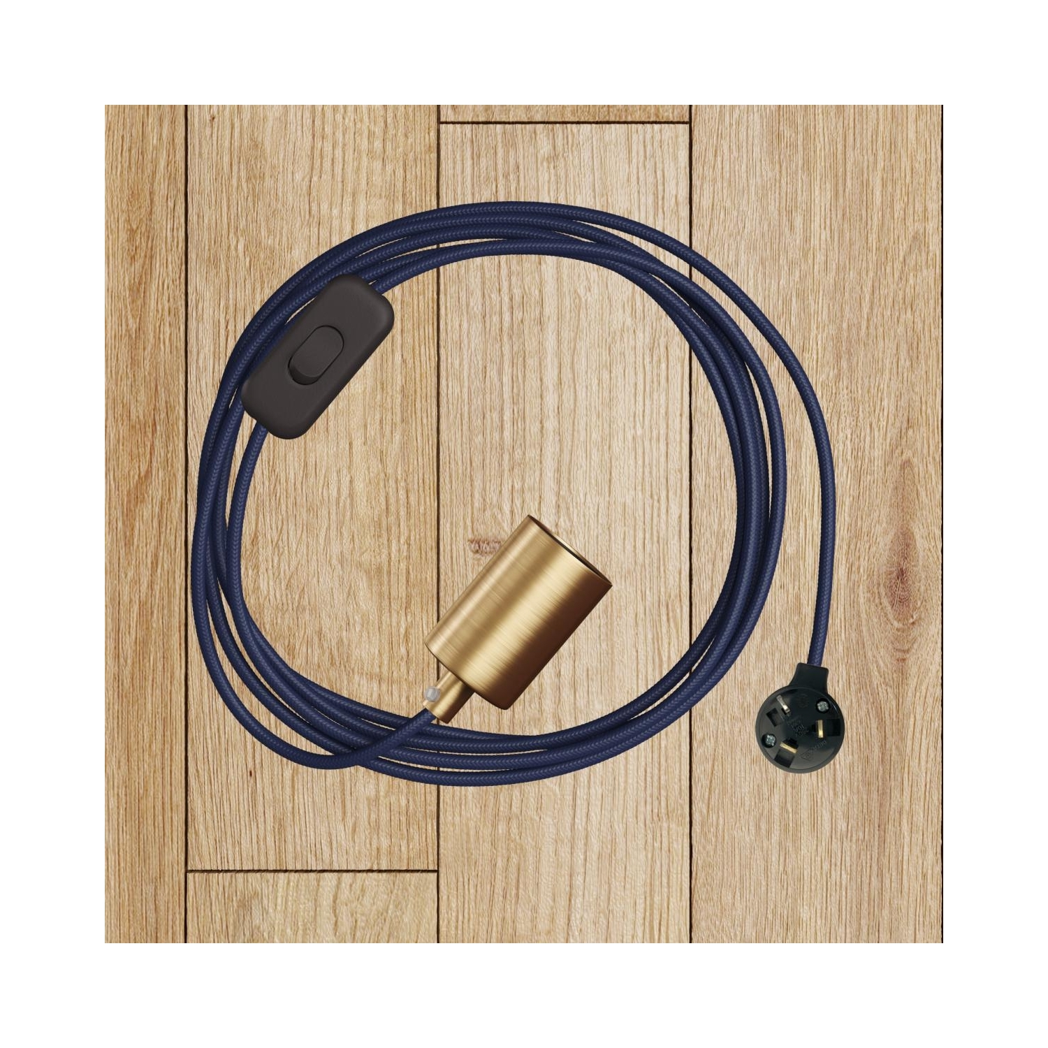 Fabric cable : 2.14m. [XZ2RM20] RM20 Dark Blue Round Rayon Electrical Fabric Cloth Cord Cable - N° of cores: 2x0.75