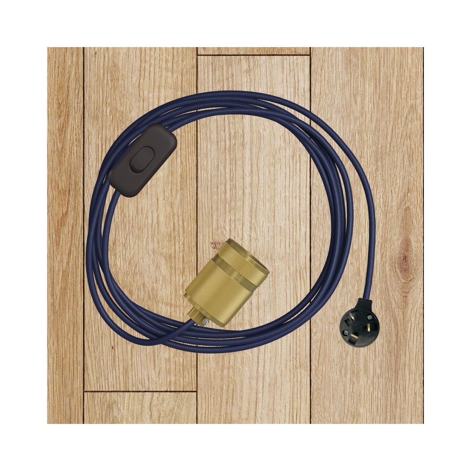 Fabric cable : 2.14m. [XZ2RM20] RM20 Dark Blue Round Rayon Electrical Fabric Cloth Cord Cable - N° of cores: 2x0.75