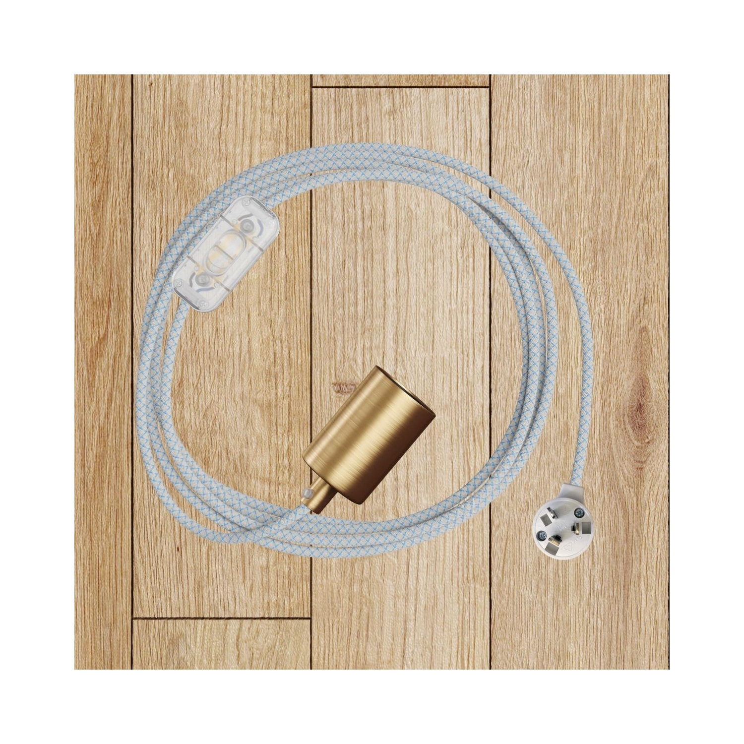 Fabric cable : 3.14m. [XZ3RD65] RD65 Steward Blue CrissCross Round Cotton & Linen Electrical Fabric Cloth Cord Cable - N° of cores: 3x0.75