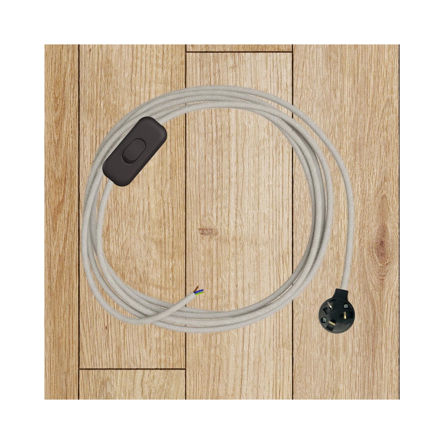 Fabric cable : 3.14m. [XZ3RN01] RN01 Natural Neutral Round Linen Electrical Fabric Cloth Cord Cable - N° of cores: 3x0.75