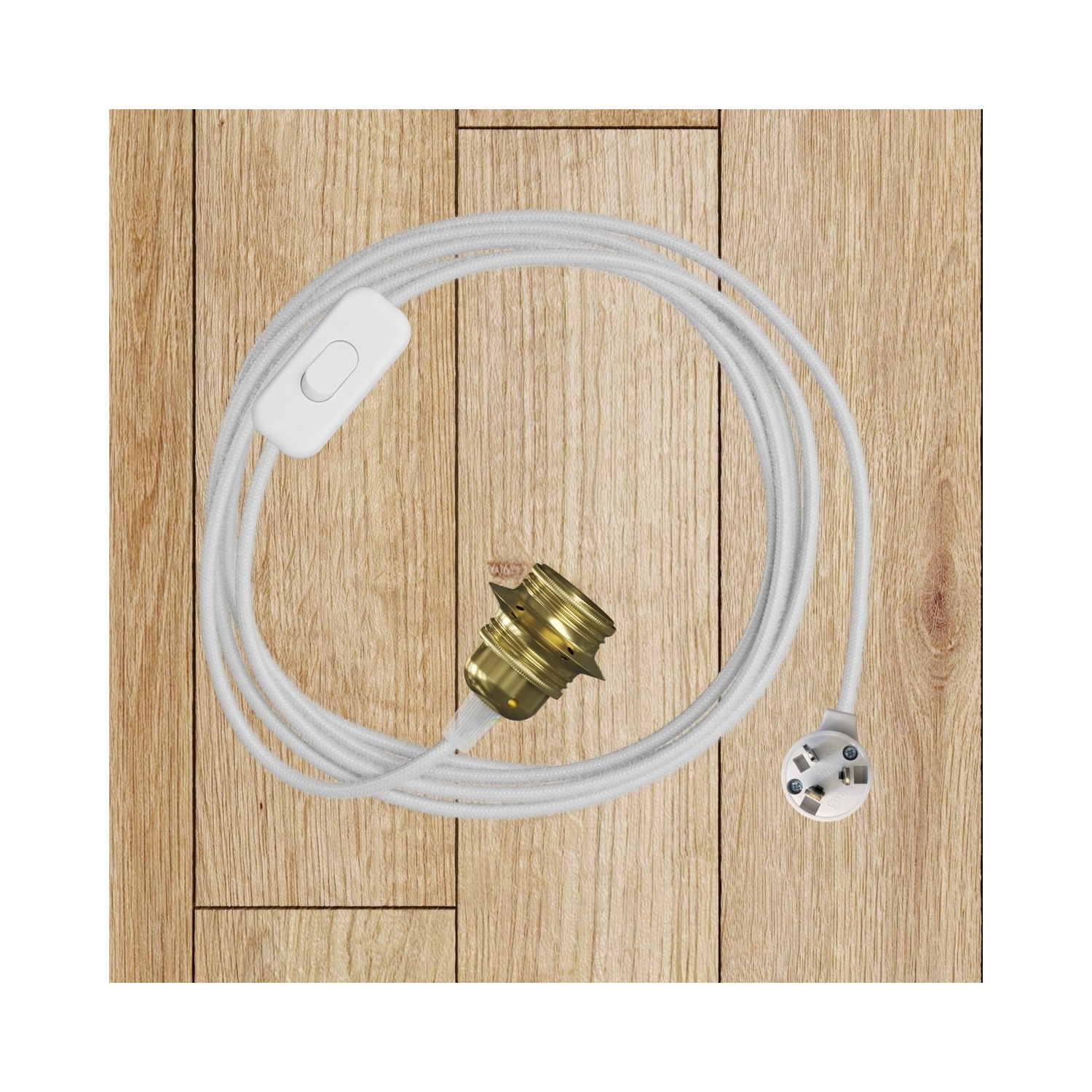 Fabric cable : 2.14m. [XZ3RC01] RC01 White Round Cotton Electrical Fabric Cloth Cord Cable - N° of cores: 3x0.75