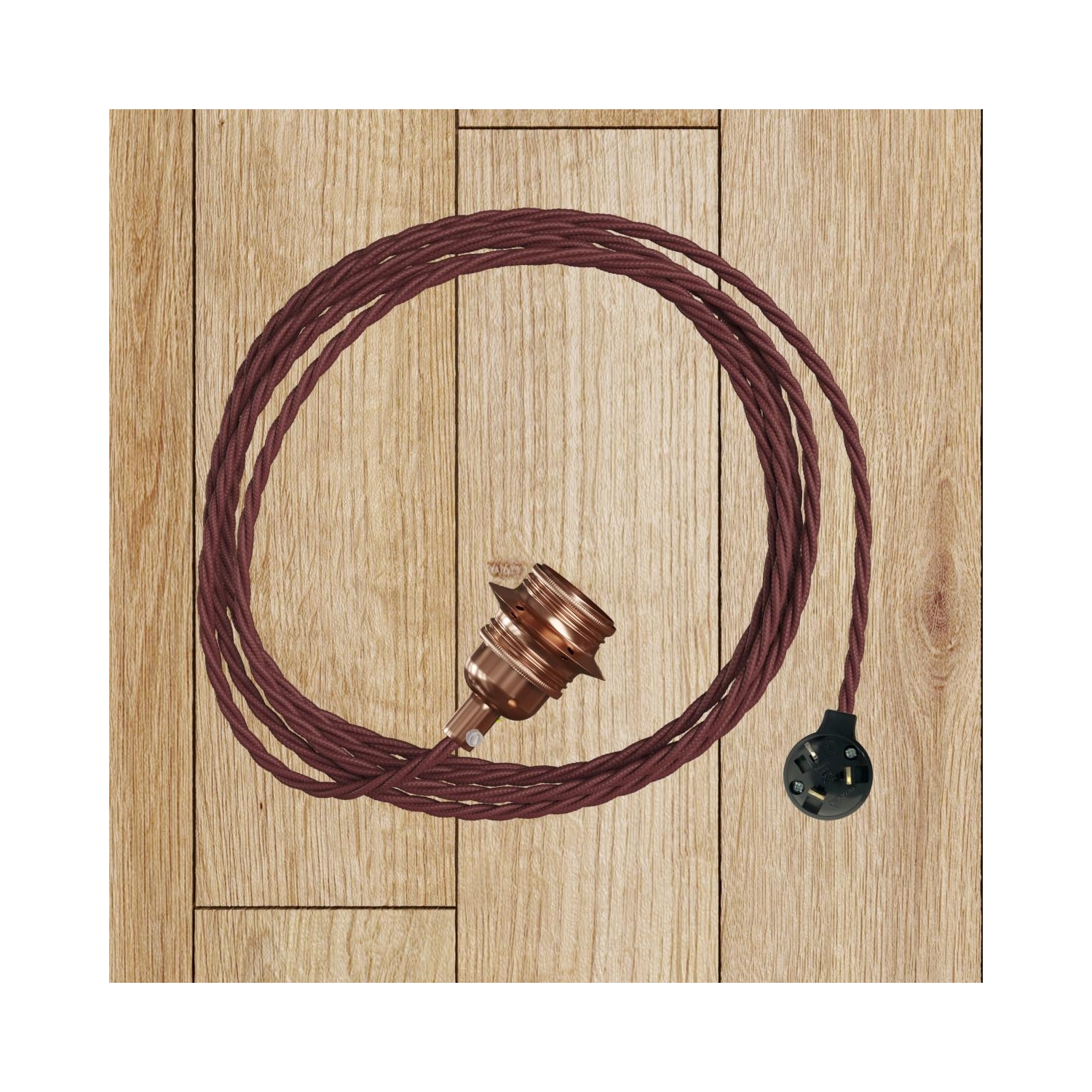 Fabric cable : 6.14m. [XZ3TM19] TM19 Burgundy Twisted Rayon Electrical Fabric Cloth Cord Cable - N° of cores: 3x0.75
