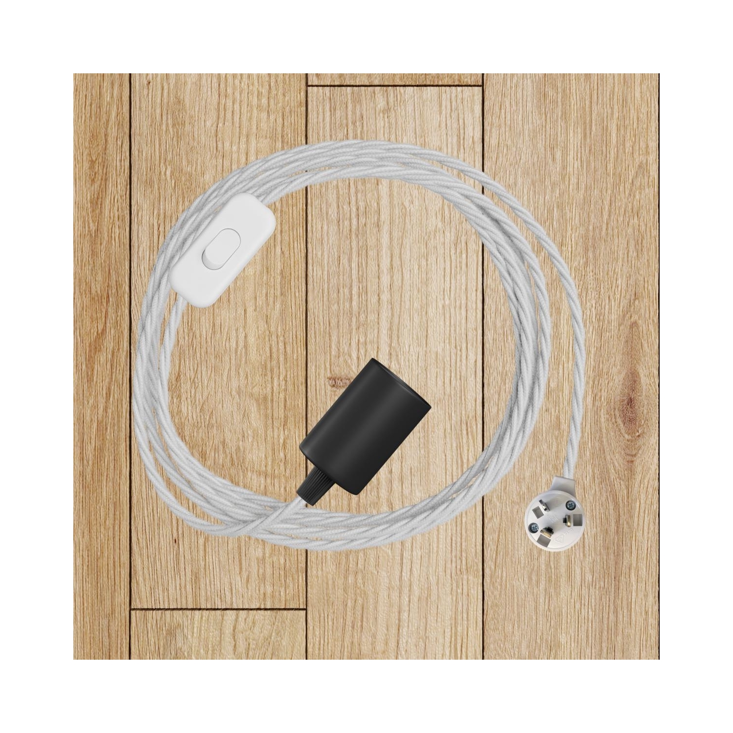 Fabric cable : 3.14m. [XZ3TC01] TC01 White Twisted Cotton Electrical Fabric Cloth Cord Cable - N° of cores: 3x0.75