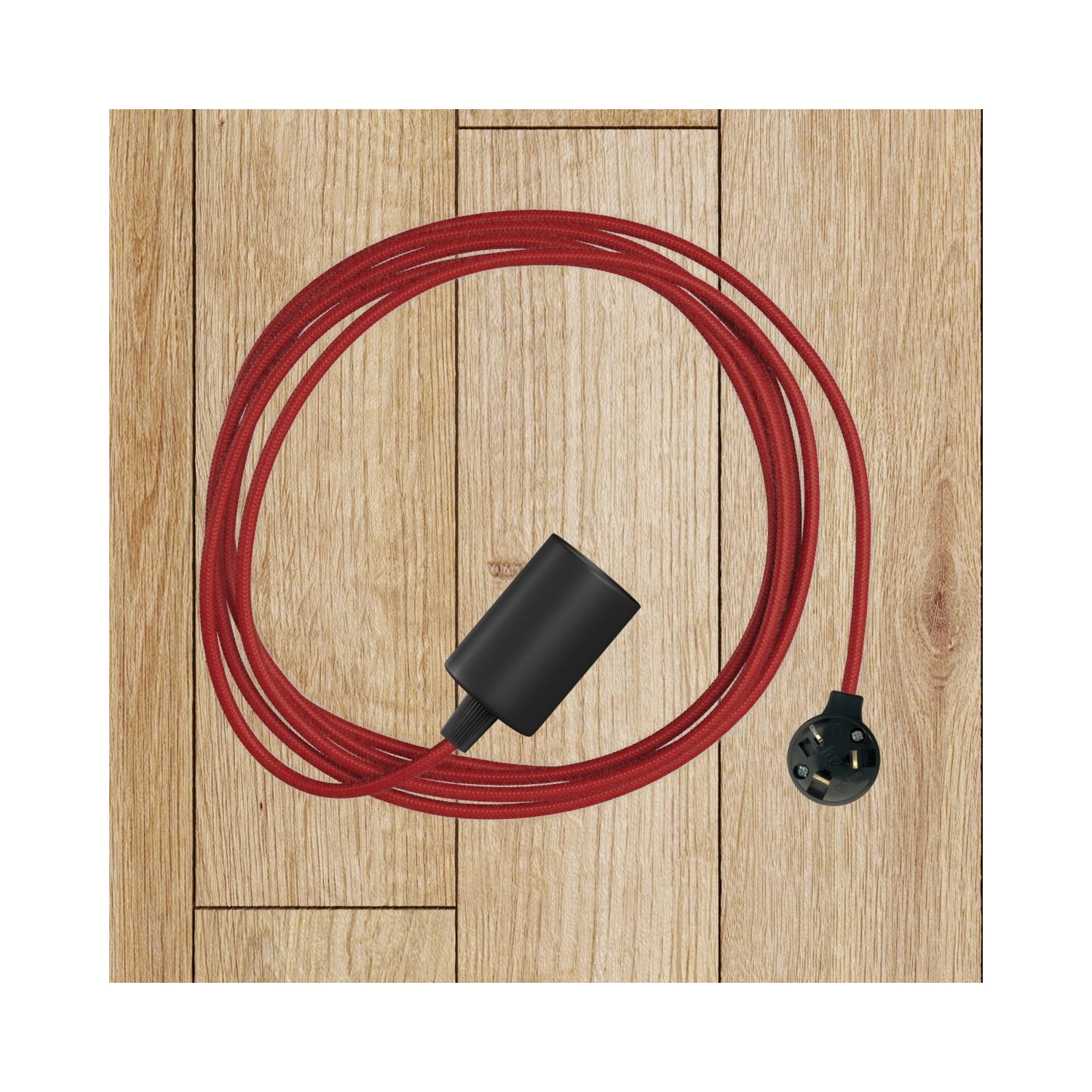 Fabric cable : 4.14m. [XZ2RC35] RC35 Fire Red Round Cotton Electrical Fabric Cloth Cord Cable - N° of cores: 2x0.75