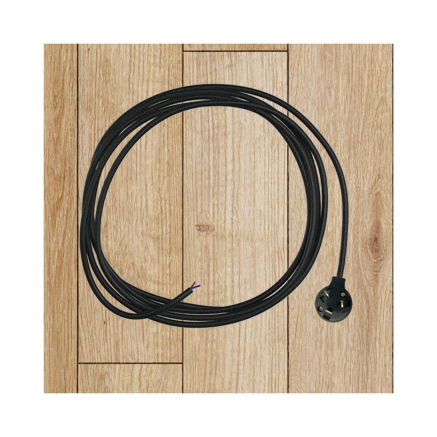 Fabric cable : 2.14m. [XZ2RC04] RC04 Black Solid Round Cotton Electrical Fabric Cloth Cord Cable - N° of cores: 2x0.75