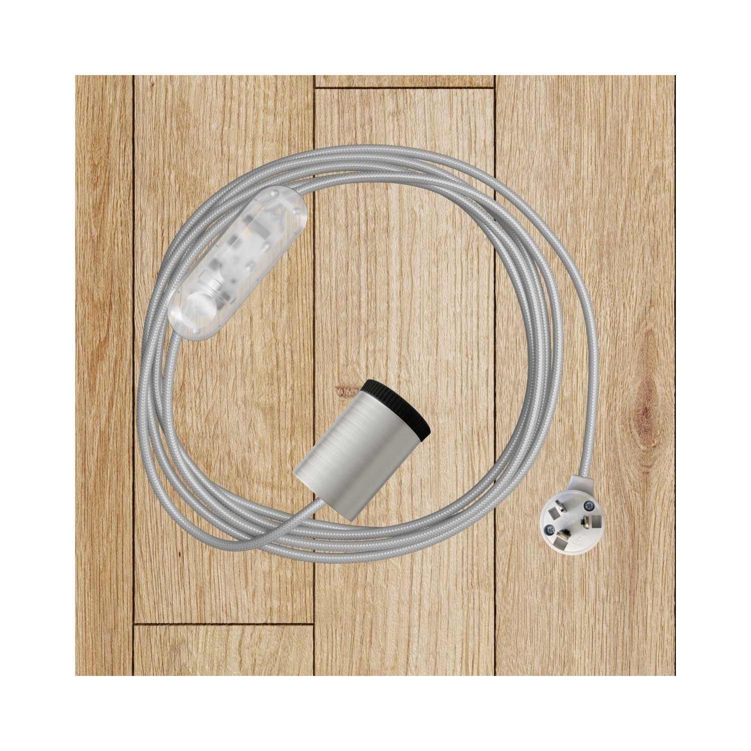 Fabric cable : 1.64m. [XZ2RM02] RM02 Silver Round Rayon Electrical Fabric Cloth Cord Cable - N° of cores: 2x0.75