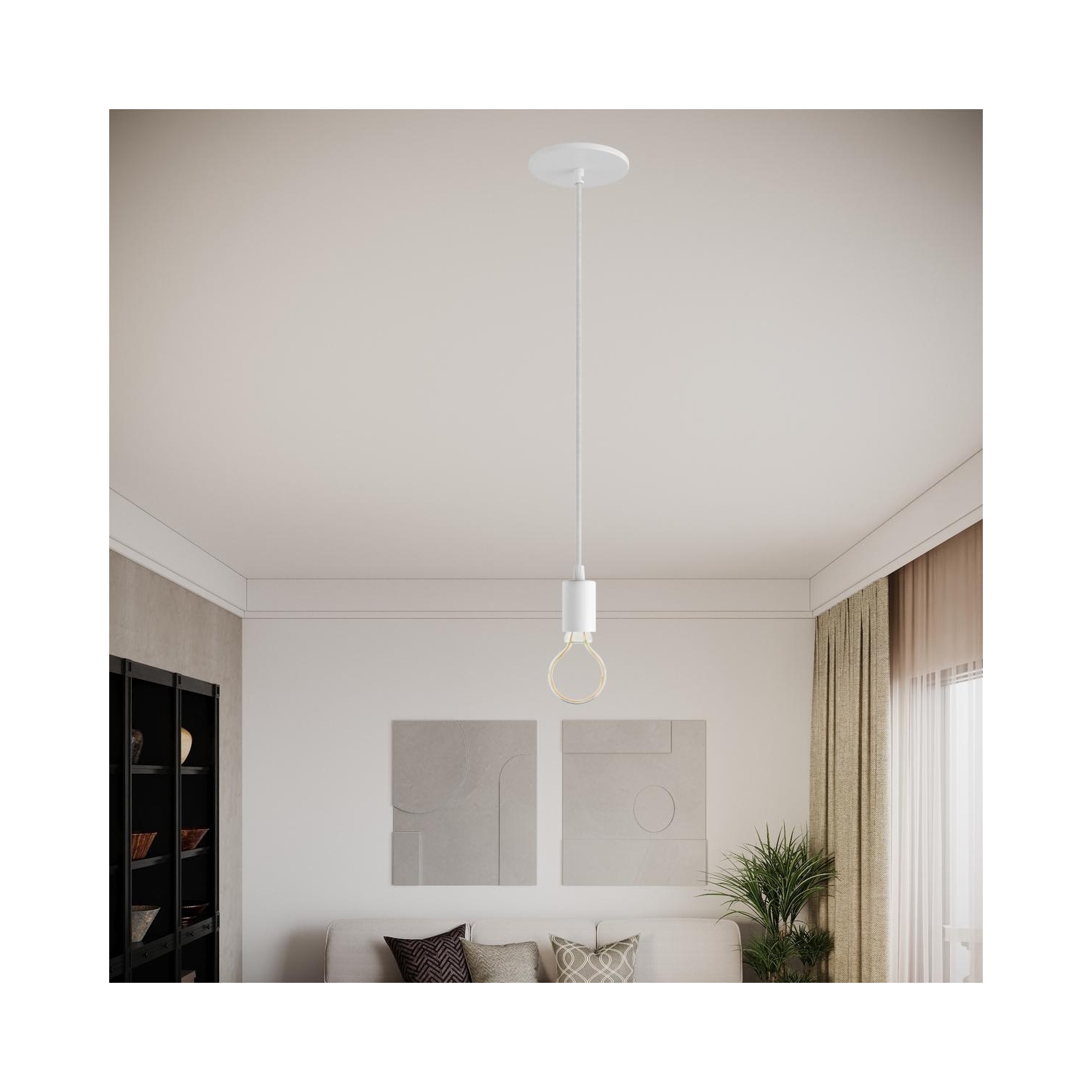 Lamp holder : 1X [KBM4011VBO] Cylindrical metal E27 lamp holder kit - Finish: Matt White, Cable clamp: Conical