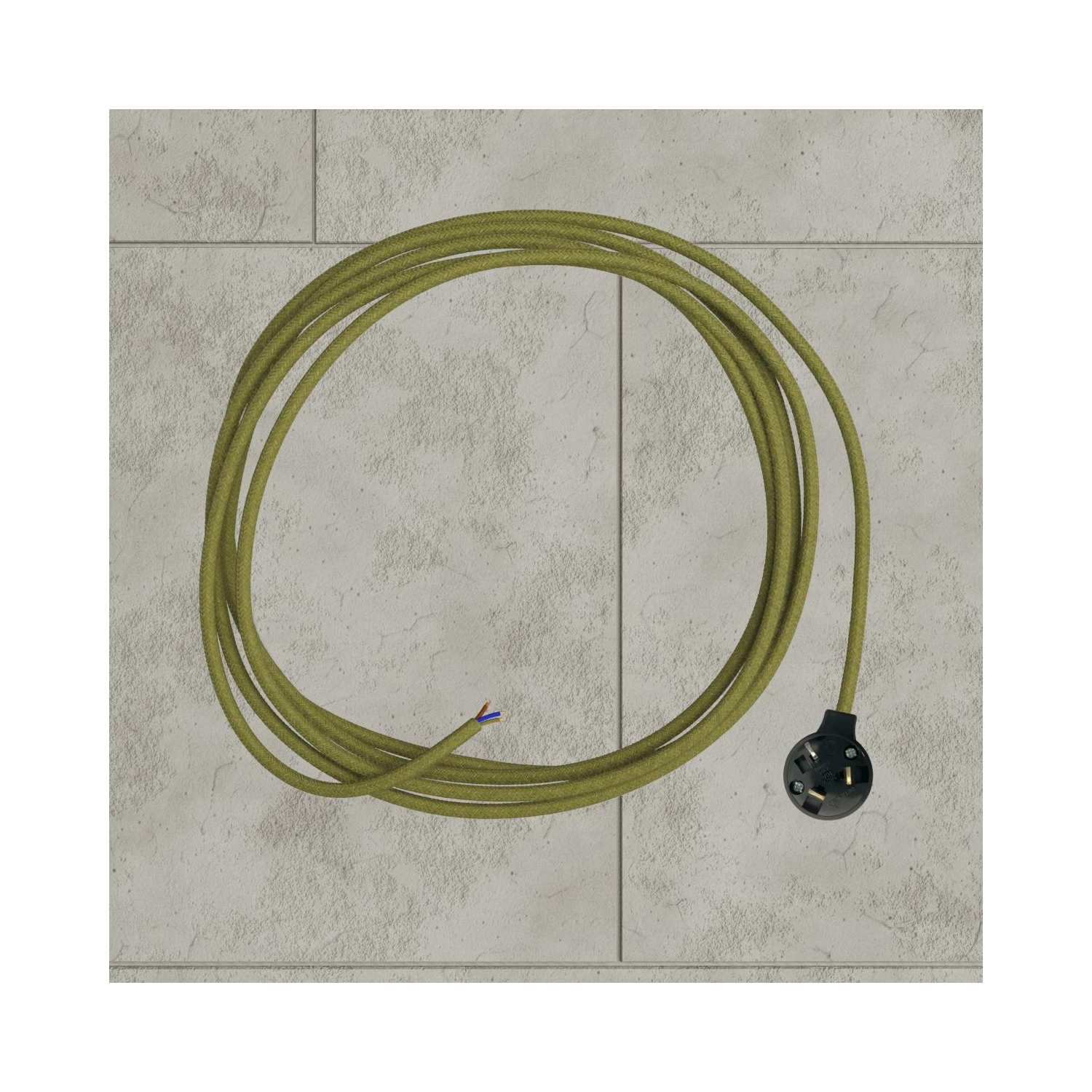 Fabric cable : 3.14m. [XZ3RN23] RN23 Hay Green Jute Round Electrical Fabric Cloth Cord Cable - N° of cores: 3x0.75
