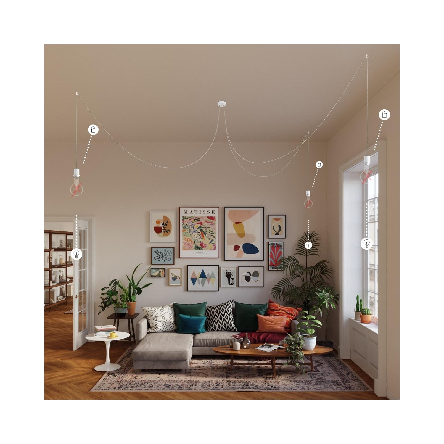 Decentralizers : 3X [DCS01BIA] Decentraliser, ceiling hook for fabric electrical cables with stop - Finish: White