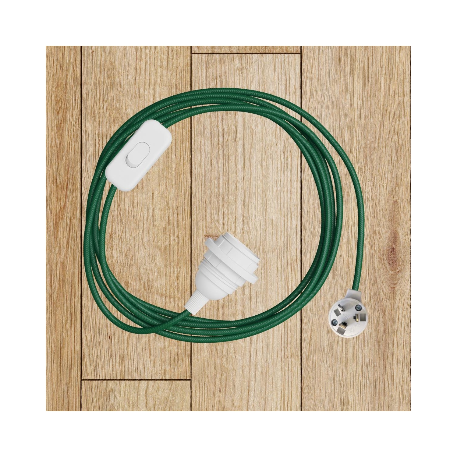 Fabric cable : 2.14m. [XZ2RM21] RM21 Dark Green Round Rayon Electrical Fabric Cloth Cord Cable - N° of cores: 2x0.75