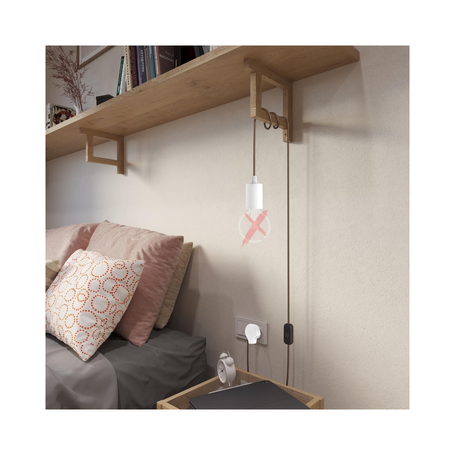 Lamp holder : 1X [KBM4011VB] Cylindrical metal E27 lamp holder kit: Gloss White - Finish: Glossy white, Cable clamp: Conical