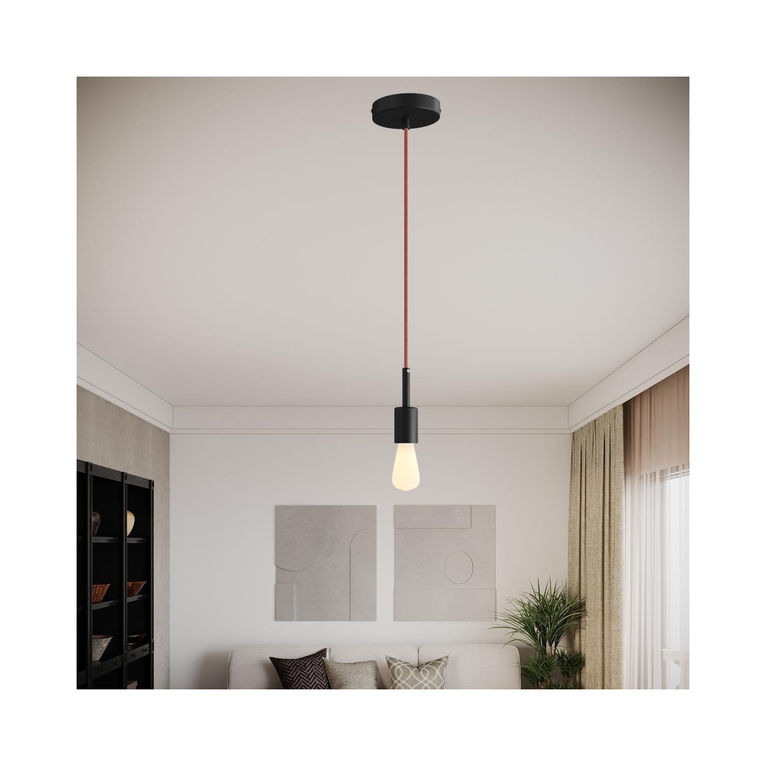 Lamp holder : 1X [KBM4011VNTERM4] Cylindrical metal E27 lamp holder kit with 7 cm cable clamp - Finish: Black