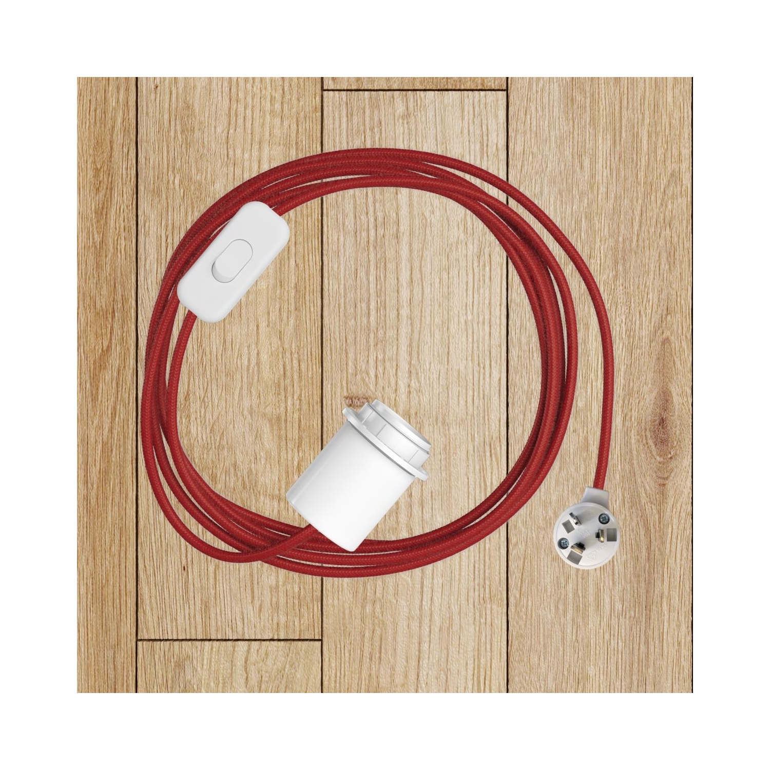 Fabric cable : 5.14m. [XZ2RC35] RC35 Fire Red Round Cotton Electrical Fabric Cloth Cord Cable - N° of cores: 2x0.75