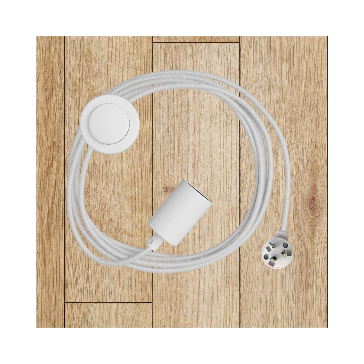 Fabric cable : 6.14m. [XZ2RC01] RC01 White Round Cotton Electrical Fabric Cloth Cord Cable - N° of cores: 2x0.75