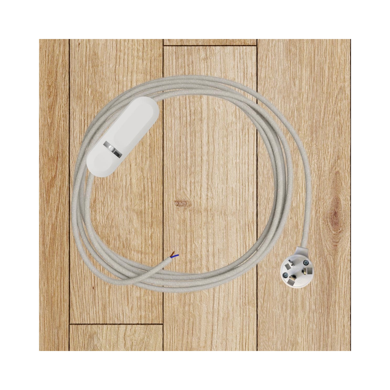 Fabric cable : 2.14m. [XZ2RN01] RN01 Natural Neutral Round Linen Electrical Fabric Cloth Cord Cable - N° of cores: 2x0.75