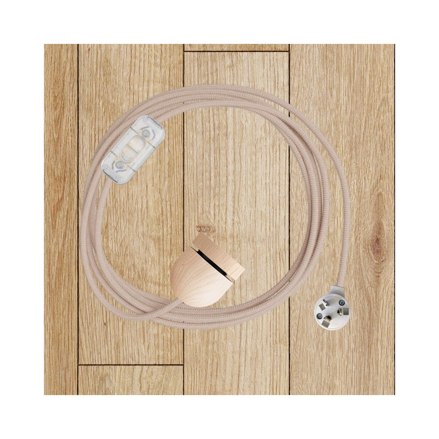 Lamp holder : 1X [KBL2117] Wood E27 threaded hemispherical lamp holder kit with hidden cable clamp and ferrule cover for lampshade - Finish: Neutral
