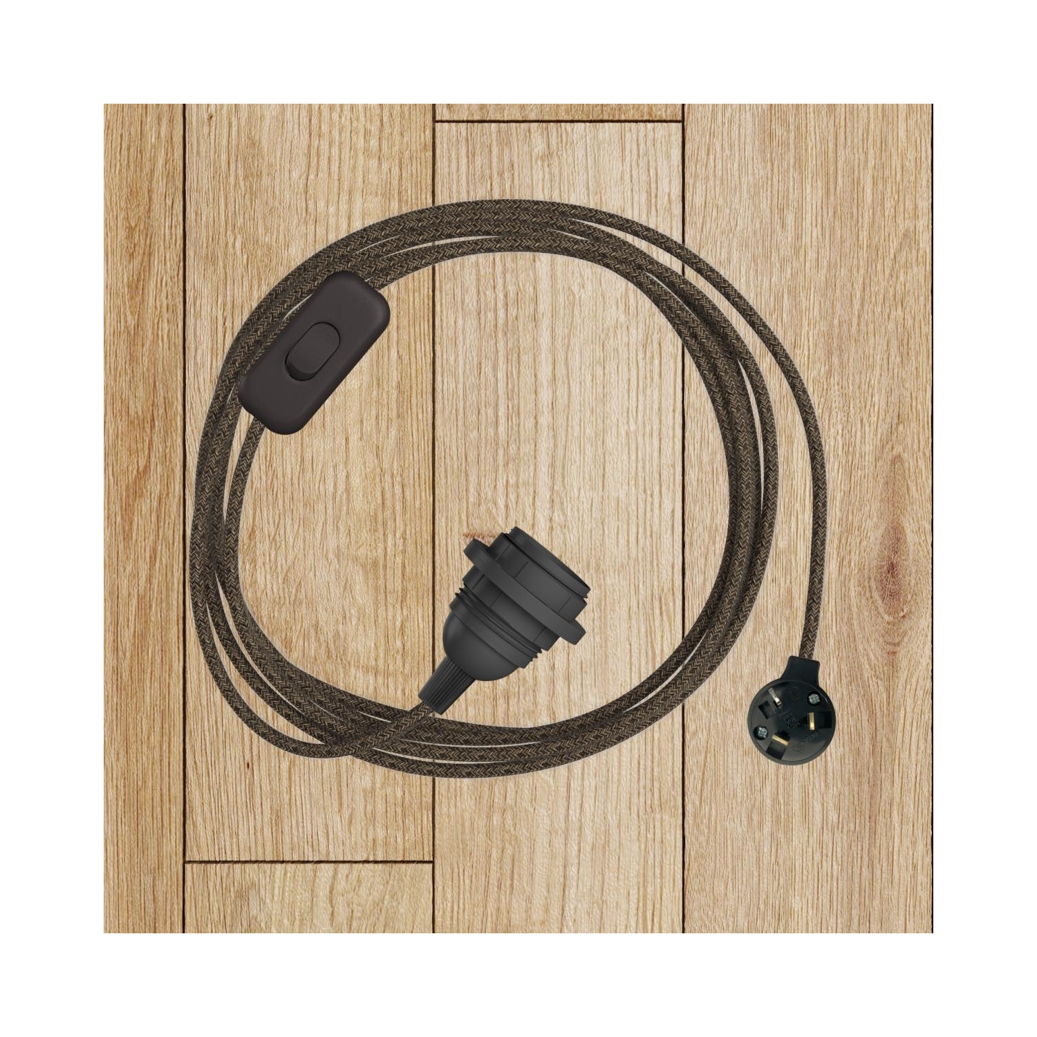 Fabric cable : 2.14m. [XZ2RN04] RN04 Natural Brown Round Linen Electrical Fabric Cloth Cord Cable - N° of cores: 2x0.75