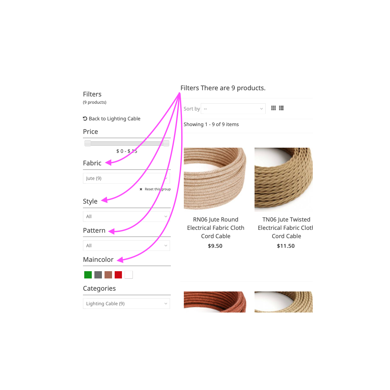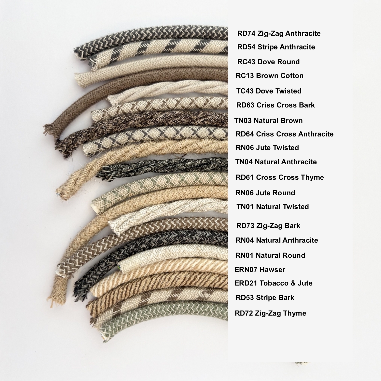 Samples not marked but easily identified by the list above and online images. Use the filter bar to find cable colours on the Lighting Cable page.