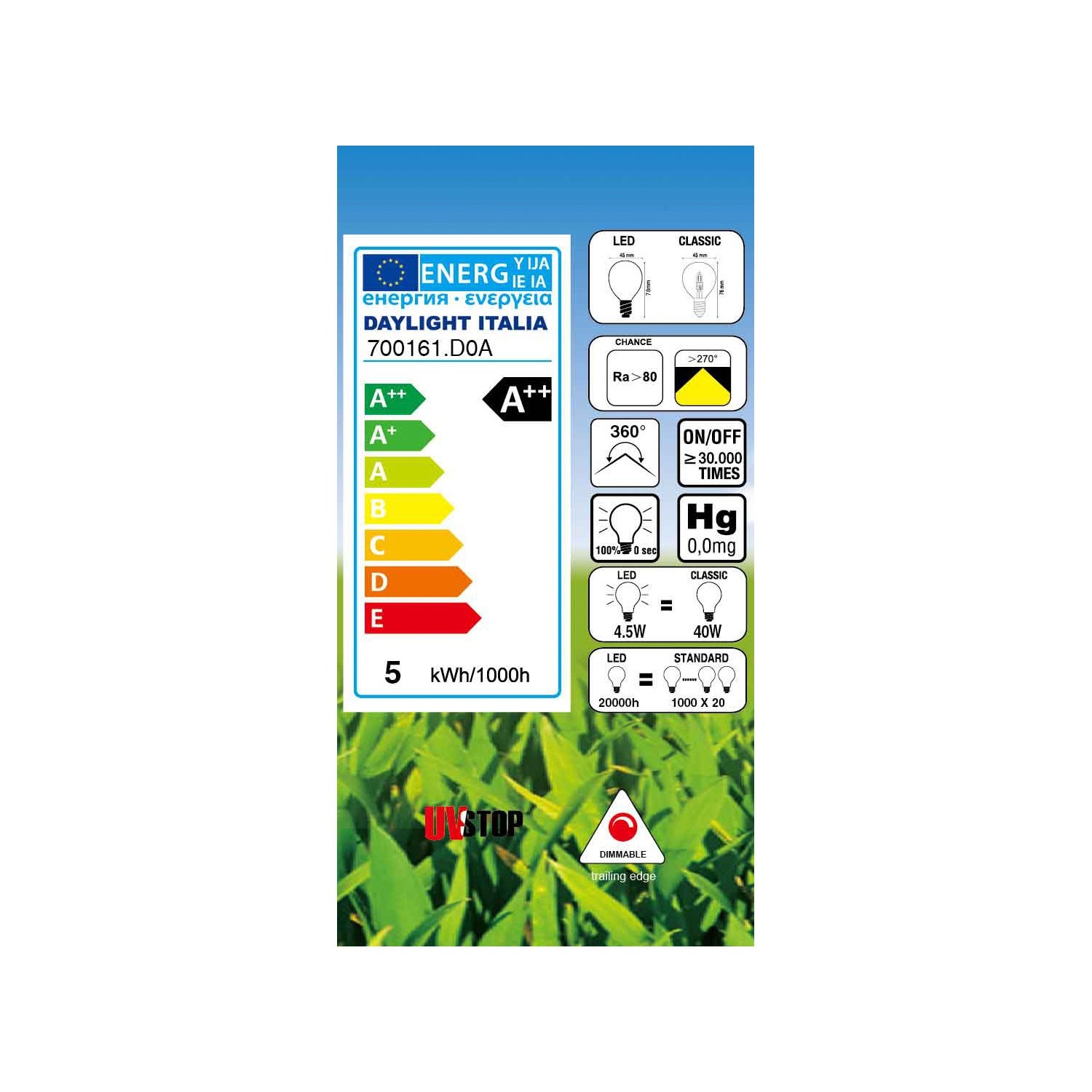 ATTENTION: to properly dim an LED bulb, a specific dimmer or the latest generation of universal dimmers is required.