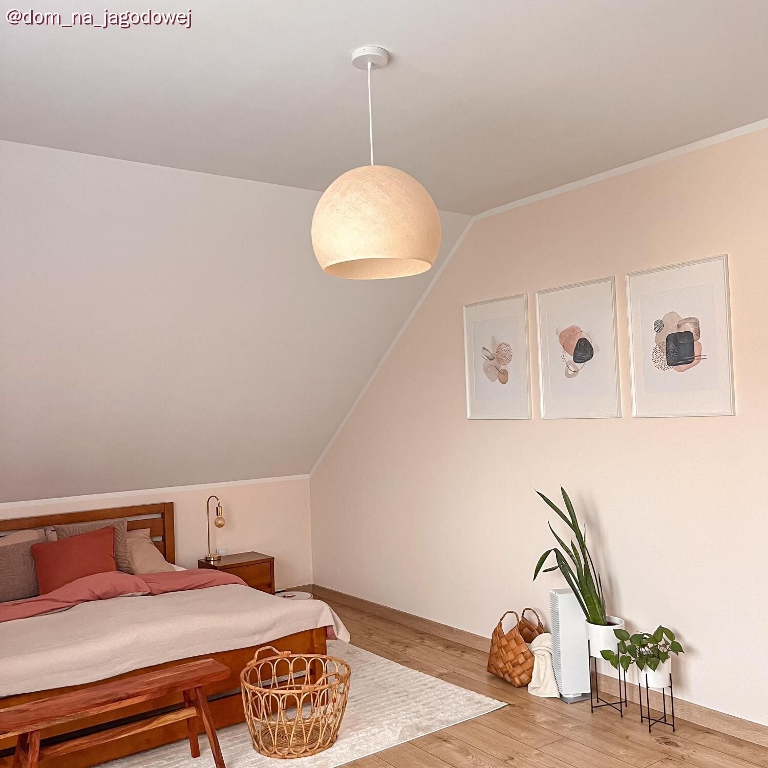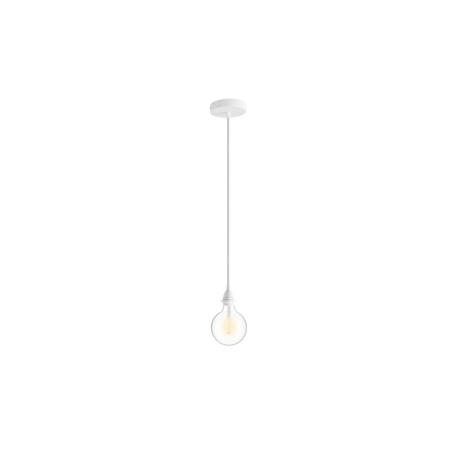 Pendant Light with a medium sphere fibre shade in medium, 1.5m of rayon cable, matte white metal ceiling rose and thermoplastic lampholder.